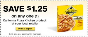 Look under the Grocery tab on California Pizza Kitchen’s Facebook page for a $1.25 off coupon! Love the Chicken with the red onion kind!