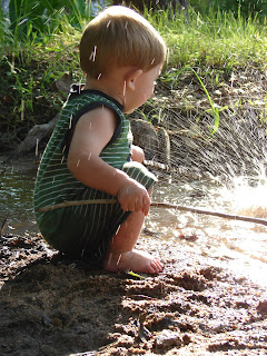 Look at this happy boy… I mean miserable child. What little boy likes to play in the water with sticks?? Keep them at home with video games, don’t bring them here.
