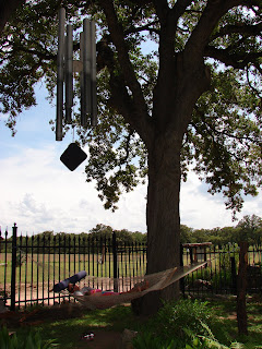 Now, all Mother’s out there can appreciate this one… I sent my husband back to the campsite to do a few things and sent the baby with him. A COUPLE hours later I could not find him. So I went wandering around the campsite looking for the two of them. I found this beautiful spot in the butterfly garden, this wind chime is NOT in the foreground, it is directly above the hammock. It must be about 10 feet long, it has the most beautiful sound. I have never seen anything like it. Imagine my surprise when I find this below the wind chime: