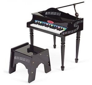 The items that caught my eye was the Melissa & Doug grand piano. My kids played on this at Christmas time, in a really nice store and I know it was close to $200. The piano comes with a bench, music book and the keys are all hand tuned.