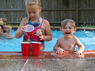 Just like Christmas, you buy them nice toys and they play with the boxes. I plan a nice dinner and have fancy pool toys, they play with plastic cups for hours, why did I never think of that?!