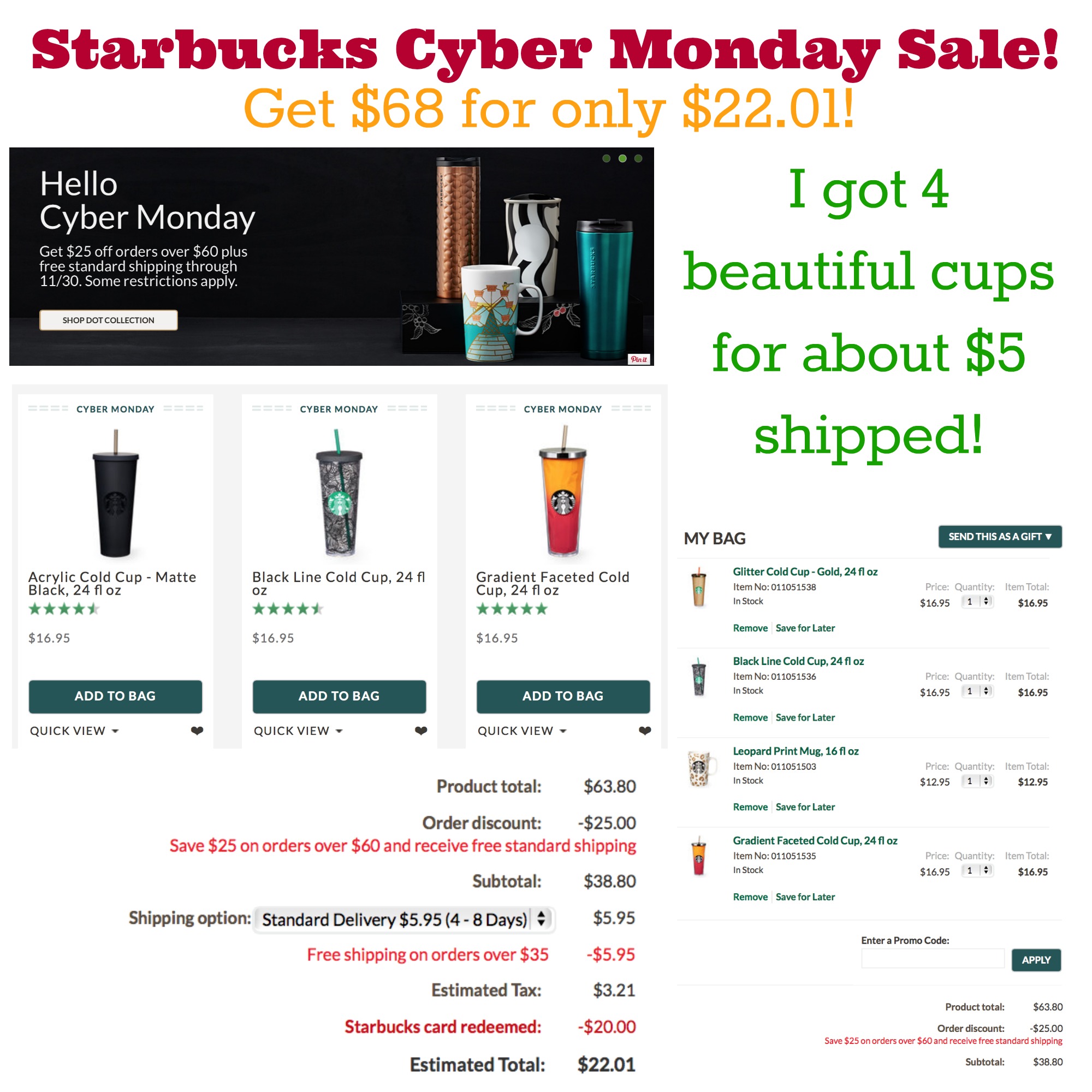For example, see my Starbucks post HERE on how I saved on their Cyber Monday sale.